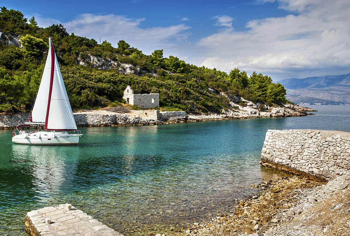 Explore the Bobovišća harbor, located in the gorgeous cove. Enjoy the bay and explore local cafes. You can join us for the optional tour of The Blaca Hermitage.  Pustinja Blaca Monastery, the home of peace, tranquility, and silent reflection. After these activities, it’s time to replenish the energy with a tasty traditional lunch. After enjoying Dalmatian specialties, we go for a swim in an amazing crystal-clear sea of the Stipanska or Lovrečina bay. Both bays are famous for large sandy beaches. After the day spent in activities, our private sailing tour comes to an end and we head back to Omiš.