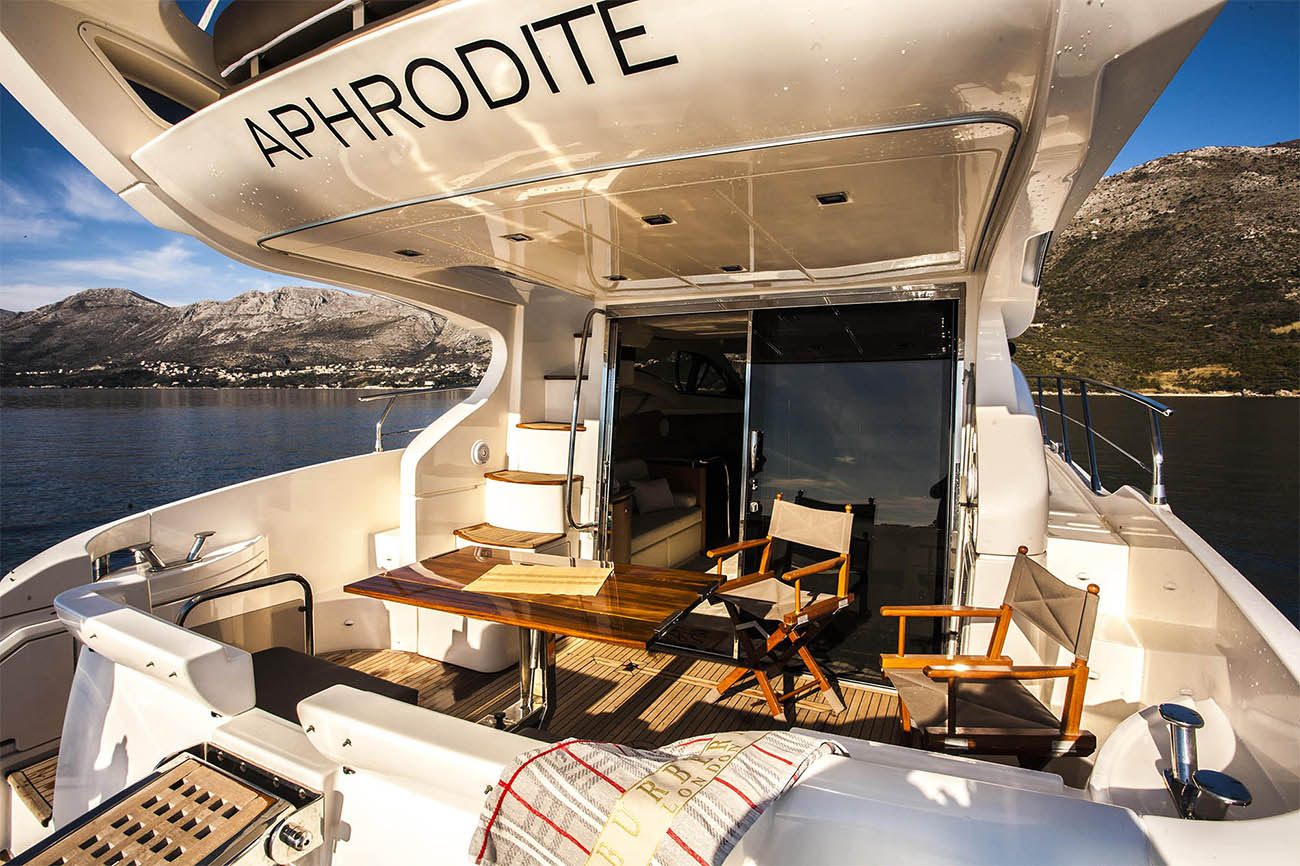 All of the yacht amenities (electricity, air-condition, bow thrusters, flybridge, lobby bar, swimming platform, sunny deck, beach towels, outside shower etc.)