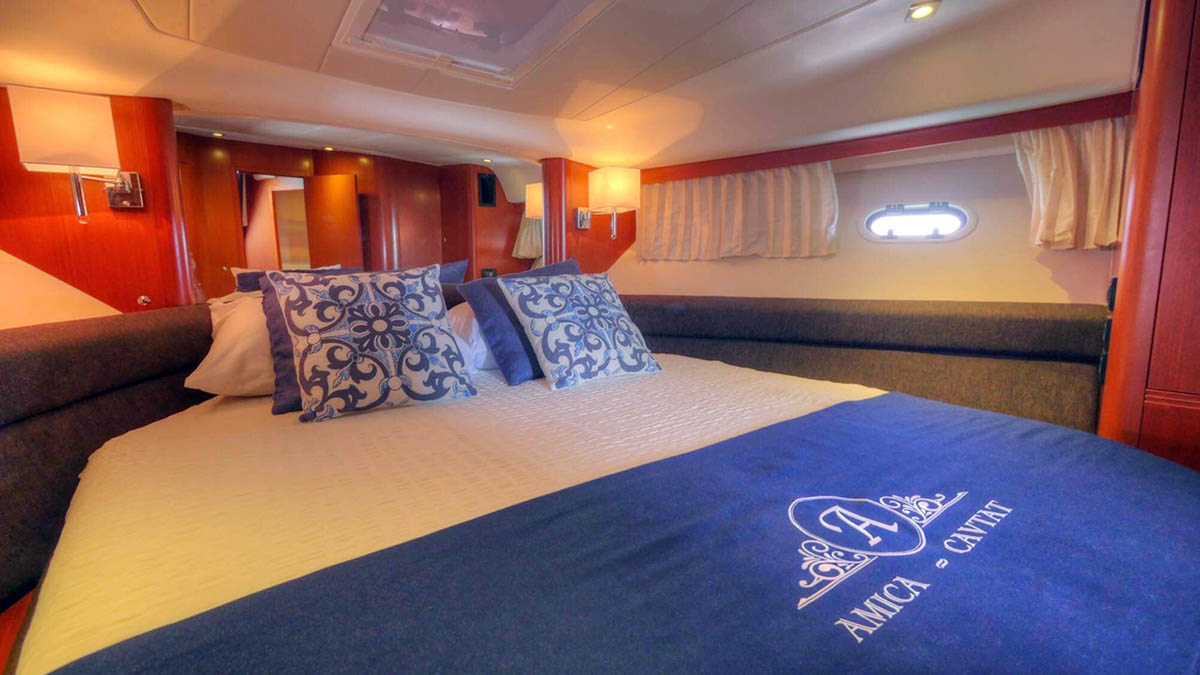 1x master cabin, double bed with bathroom (shower & WC, hot and cold water), AC